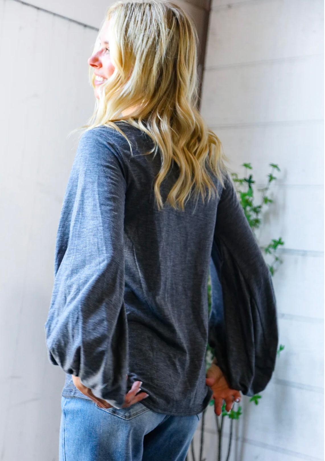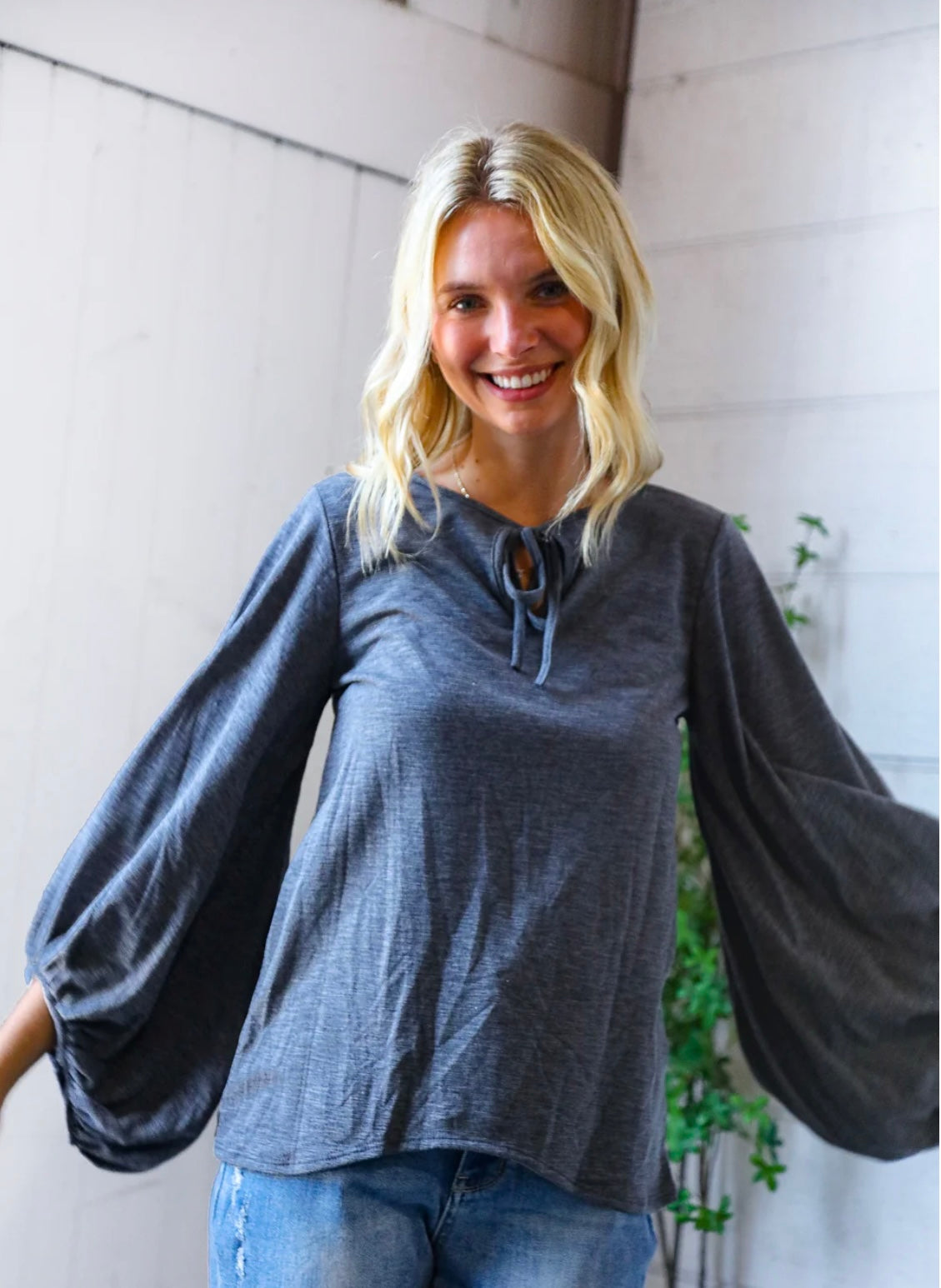 Beeson River - Charcoal Tie Front Synch Wrist Top